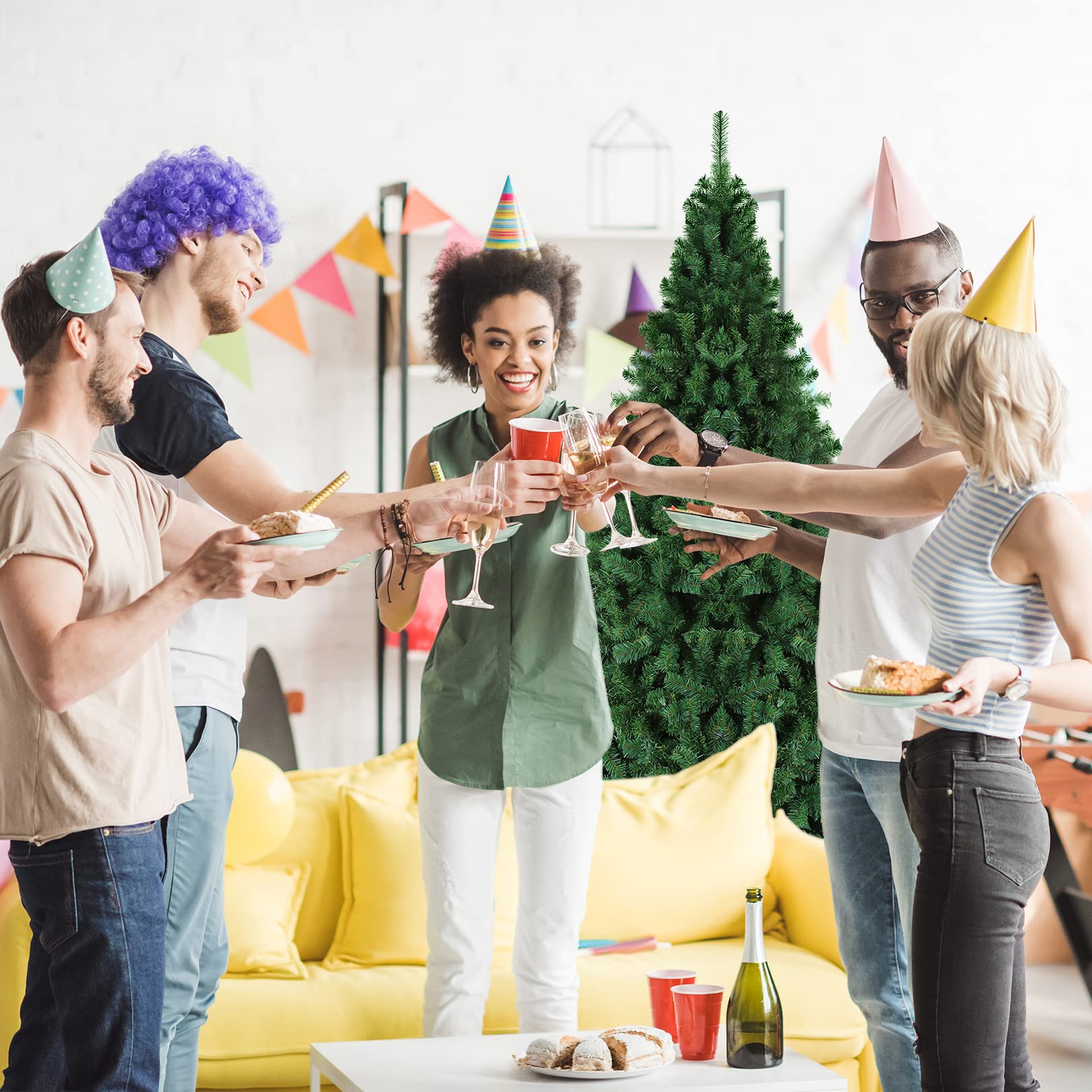 ["Classic Christmas Tree: A classic green Christmas tree with fully realistic branches that can be set up in living rooms, offices, and shopping centers to give you a festive Christmas feeling (decorations not included!)","Durable and reusable: The metal stand and trunk are used. The branches and trunk are connected by metal hinges. After use, they can be folded and stored for multiple uses.","Easy to install: The entire tree consists of 4 parts, a metal stand and 3 trunks. For installation, refer to the installation manual. Installation time is approximately 30 minutes","Christmas Tree Warm Tips: We offer you hassle-free customer service so you can buy with confidence. We are pretty sure you will be super impressed by the HIGH QUALITY of our Christmas tree."]