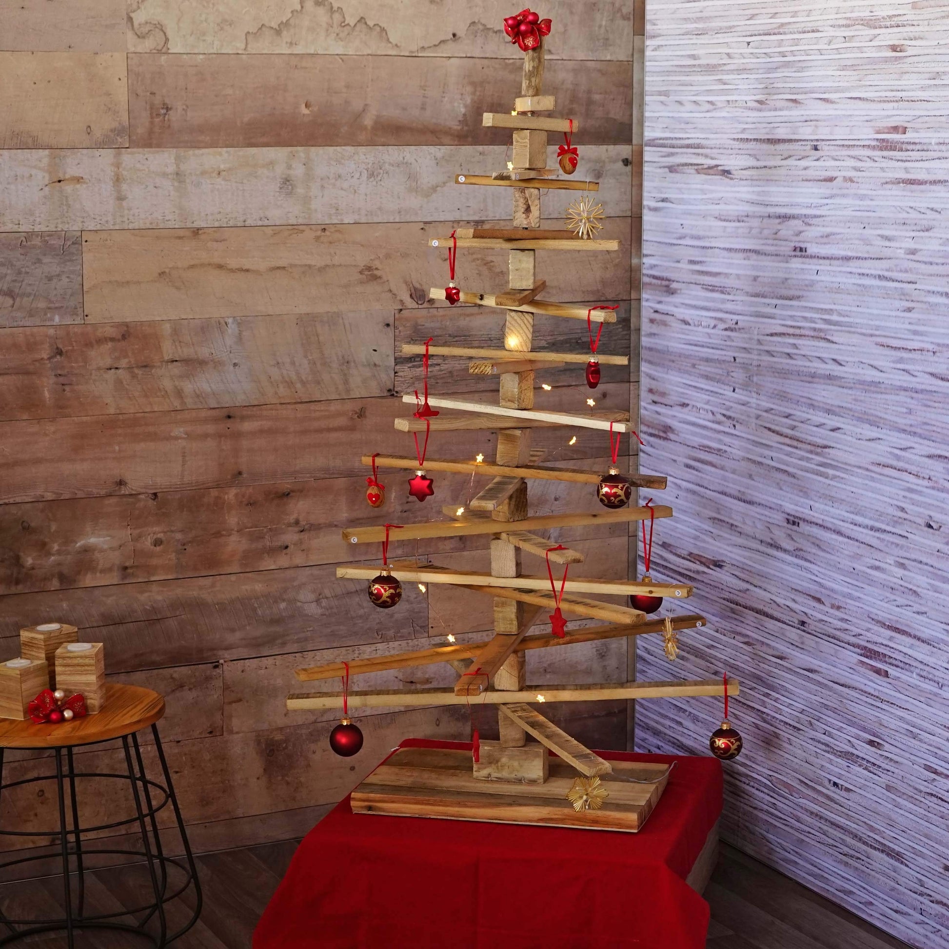 This decorative, needle-free tree made of pine wood can be used as an alternative to the classic Christmas tree or as a decoration. The wooden elements allow the decoration tree to be adjusted and decorated according to your own style at home.