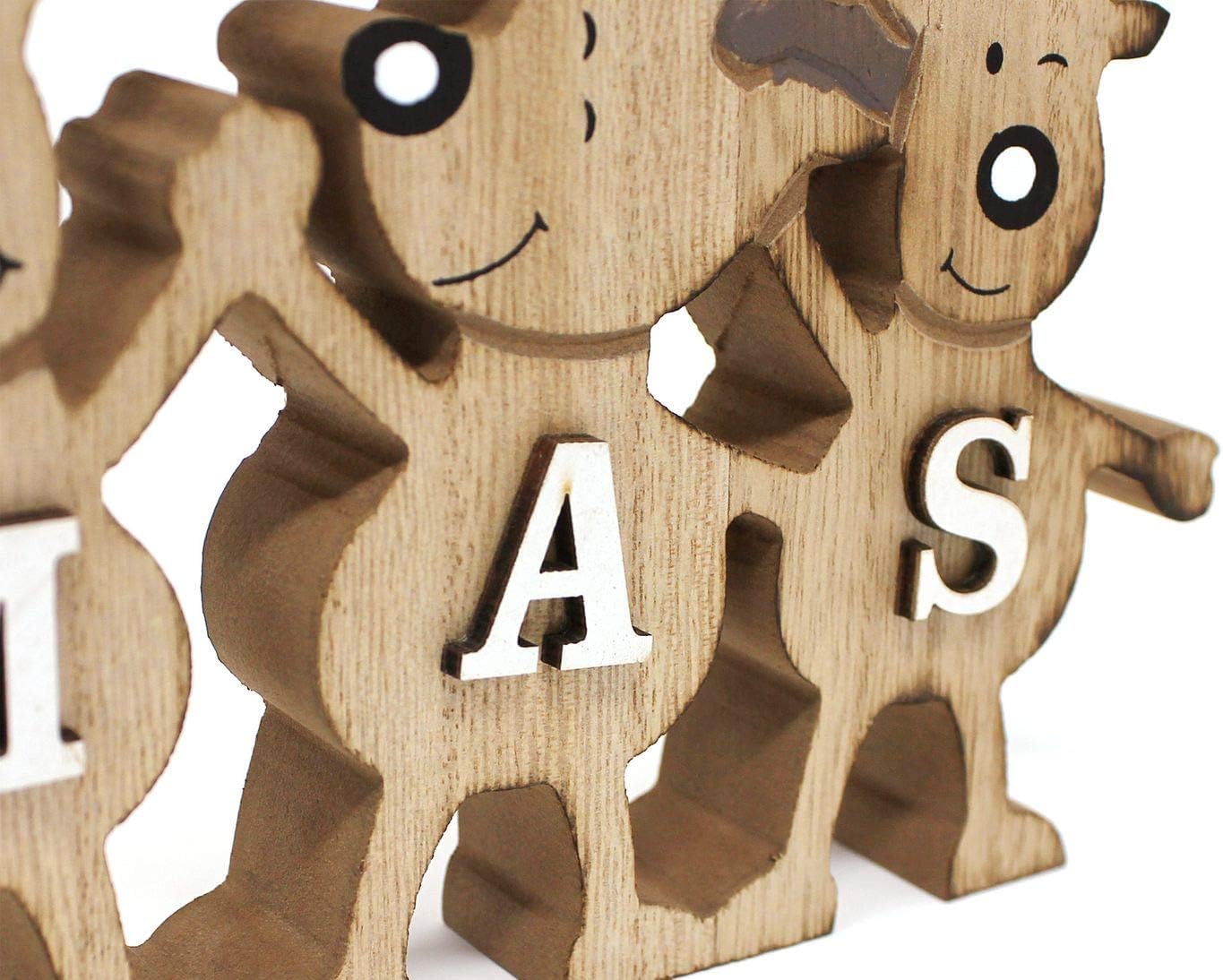 Decorative display stand for 4 reindeer friends Xmas 26 x 13 cm, natural brown wood, country style wood stand decorative sign elk row winter decor