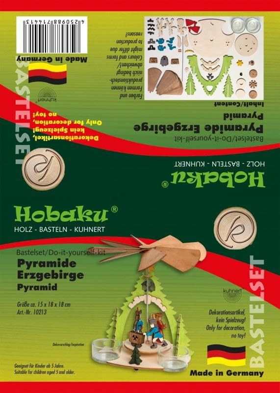 "Fascinating woodwork from the Ore Mountains, Playful wood crafting set for gifting or DIY for the whole family, Dimensions: 7x7x6 inches, Fascinating pyramid; customizable with watercolors, acrylic paints, felt or wax crayons, Made in Germany"