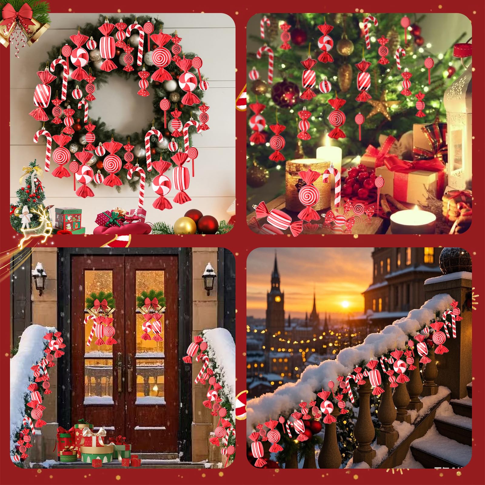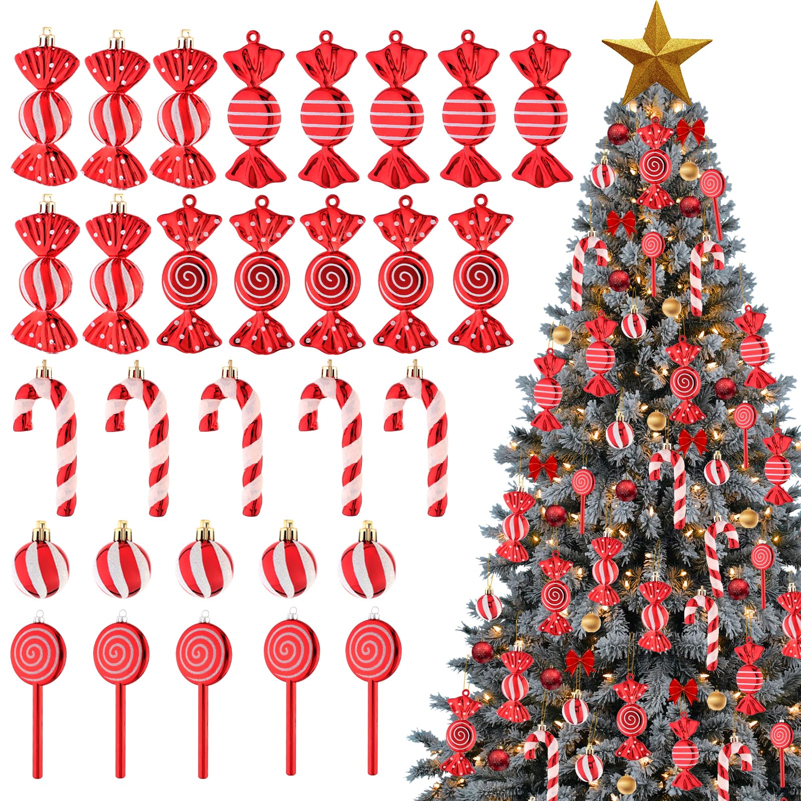["Sweet & Festive Designs"] This large Christmas candy cane decoration set includes 30 plastic candy-themed decorations in 5 retro styles - peppermints, candy canes, lollipops, and more - to delight your guests with festive charm. ["Durable & shatterproof"] Each Christmas peppermint candy ball is made of UV-resistant, shatterproof plastic with glitter accents. Will not fade or break - use year after year to brighten your holiday traditions. ["Versatile Holiday Decoration"] Use these huge Christmas candy cane ornaments on trees, wreaths, mantels, porches, garden railings, or party tables. Great for indoor and outdoor Christmas, weddings, or themed events. ["Easy Hanging & Lightweight"] Each oversized Christmas tree decoration comes with a golden buckle and hanging rope for easy placement. Lightweight design does not damage branches and is easy to install in minutes. ["Charming Gift Set"] This 8-piece large Christmas ball set is a perfect Christmas gift. Share sweetness and joy with your loved ones and give your Christmas tree a colorful, unique look.