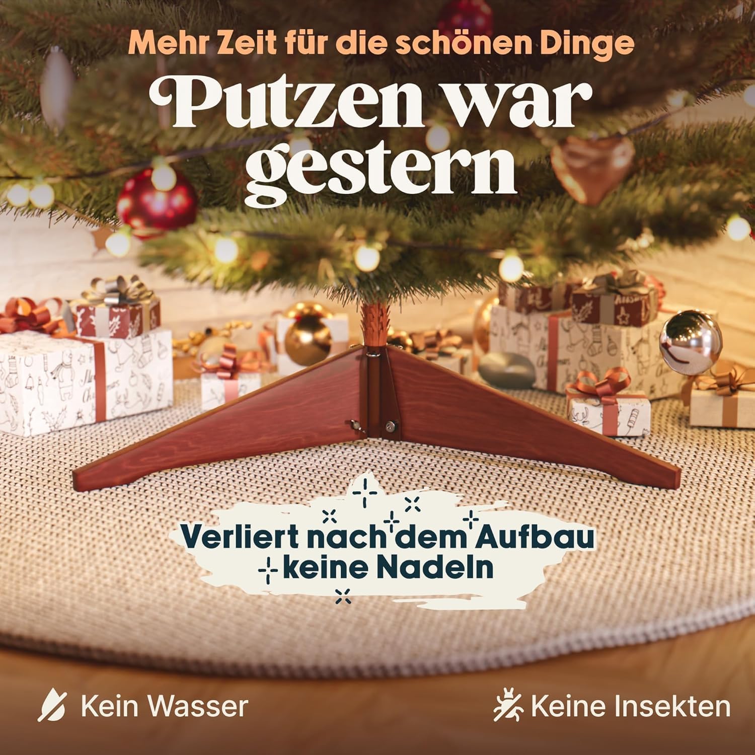 "✅ Quick & uncomplicated – with elegant wooden stand: The setup couldn't be easier! Your artificial tree comes with a sturdy, high-quality wooden stand so you can set it up effortlessly and safely. Christmas can come – stress-free and stylish!",