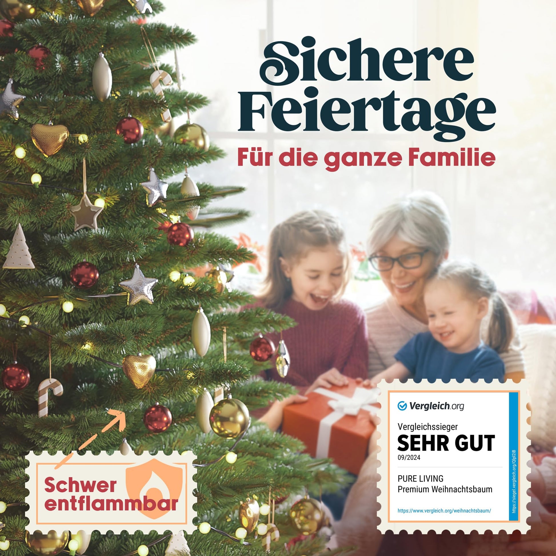 ["✅ Lasting Christmas joy – from the COMPARISON WINNER: The Pure Living Christmas tree brings joy year after year! With our 100% satisfaction and 10-year guarantee, you have one less worry. No shedding tree, no annual repurchase – just festive joy that lasts. Simply store space-saving after the holiday and look forward to the next Christmas.",