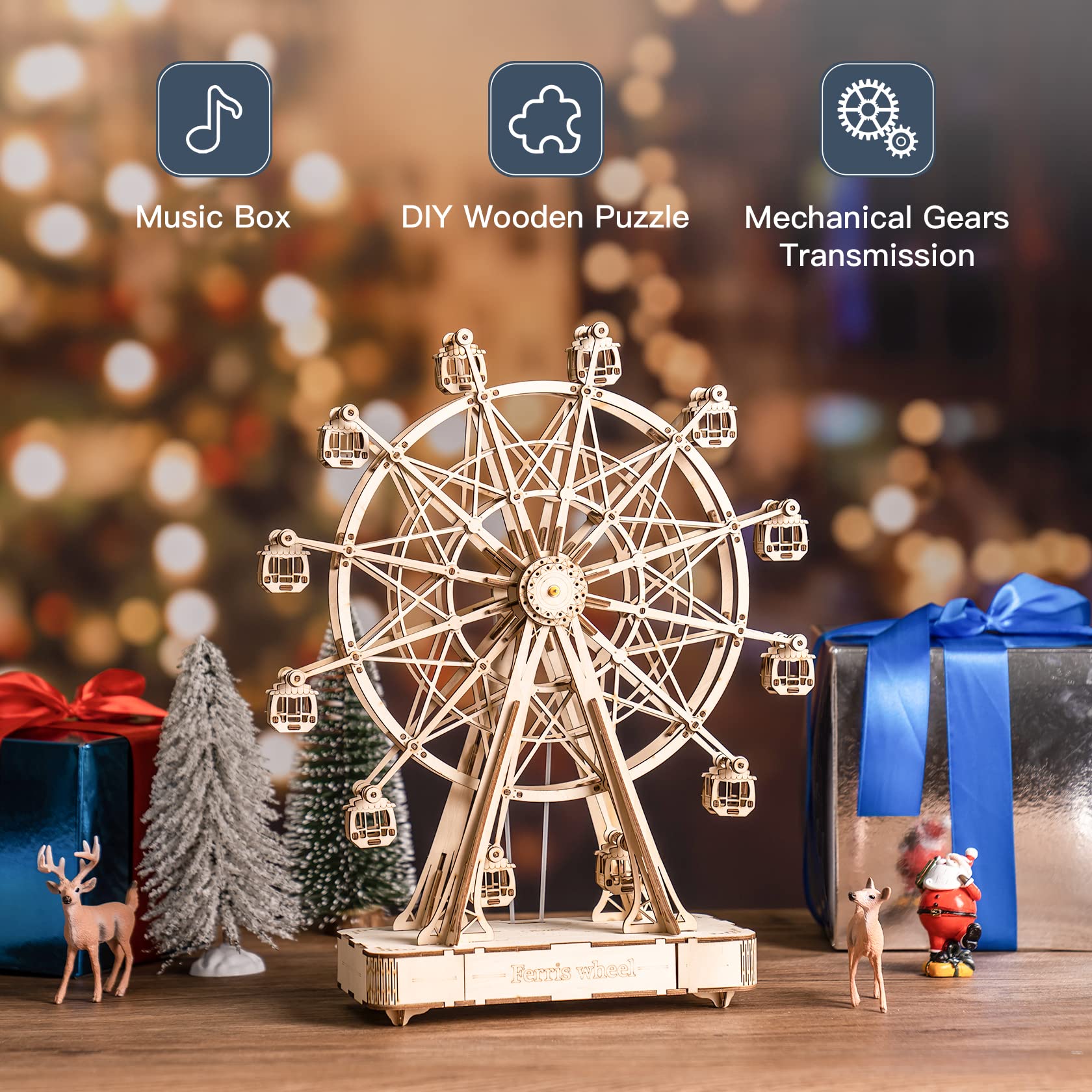 ["Unique Gift Idea, No Glue Required"] This 3D puzzle is made of natural wood and uses a clockwork to power it. An unforgettable experience for your family and friends to admire. Perfect gift choice for birthdays, anniversaries, Christmas, etc.