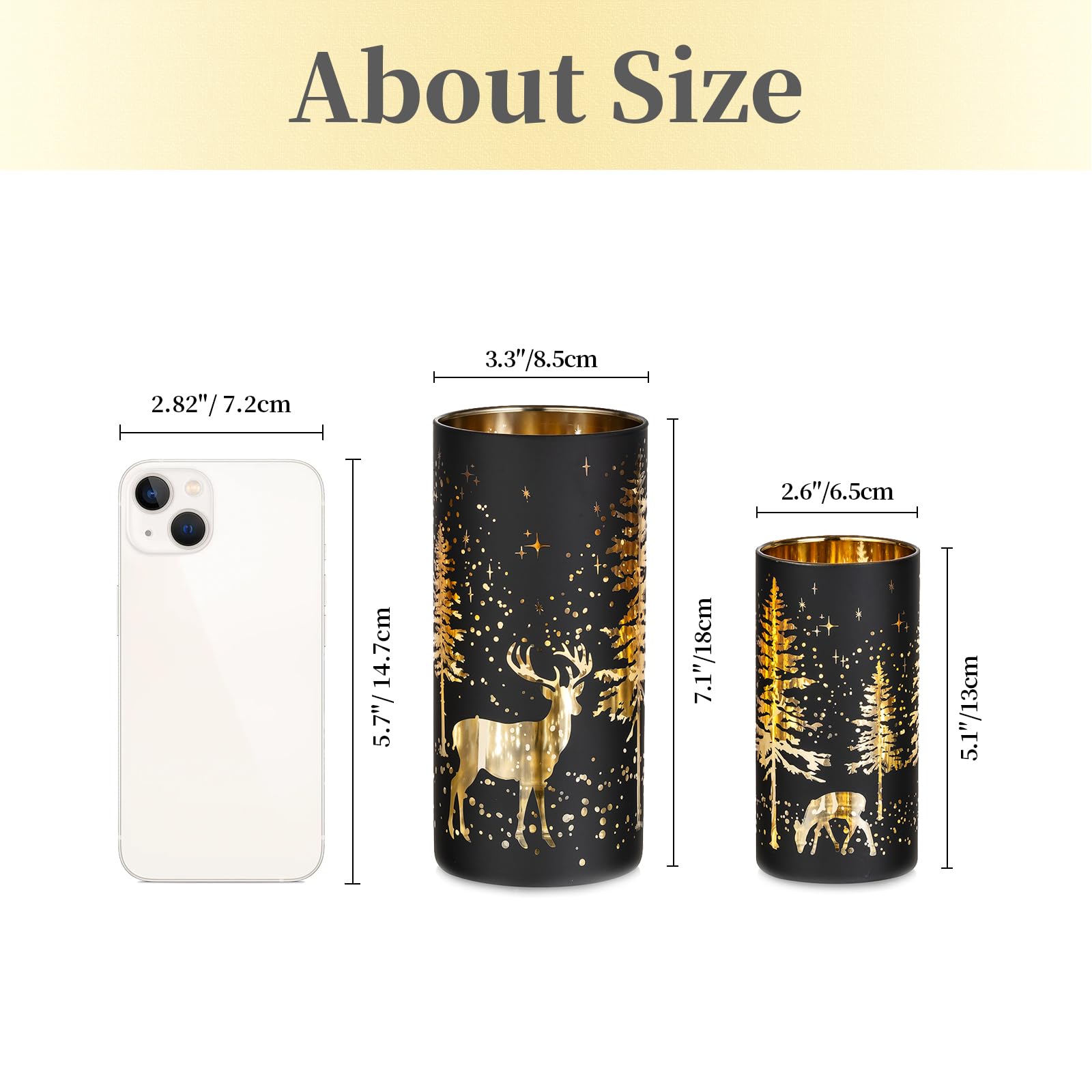Ideal Size for Christmas Decoration: Includes 2 candle holders with dimensions of 2.55" D * 5.11" H and 3.34" D * 7.08" H respectively. Suitable for standard (LED) pillar candles, floating candles, string lights, or other Christmas ornaments. They are the best choice for use as Christmas decor, very pretty and practical.