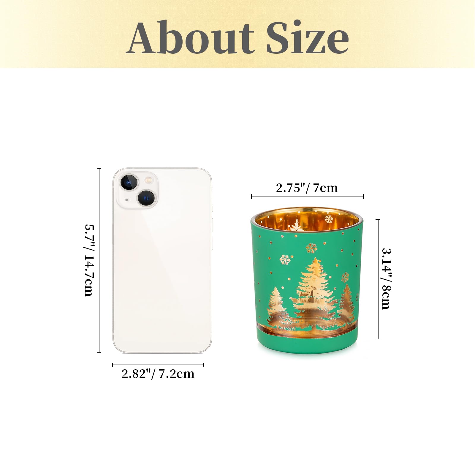 "Ideal Size for Christmas Decoration: Comes in 6 Christmas tea light holders (7cm D * 8cm H), suitable for tea lights, candies, and other ornaments. The tea light holder glass is a very pretty and practical home decoration."