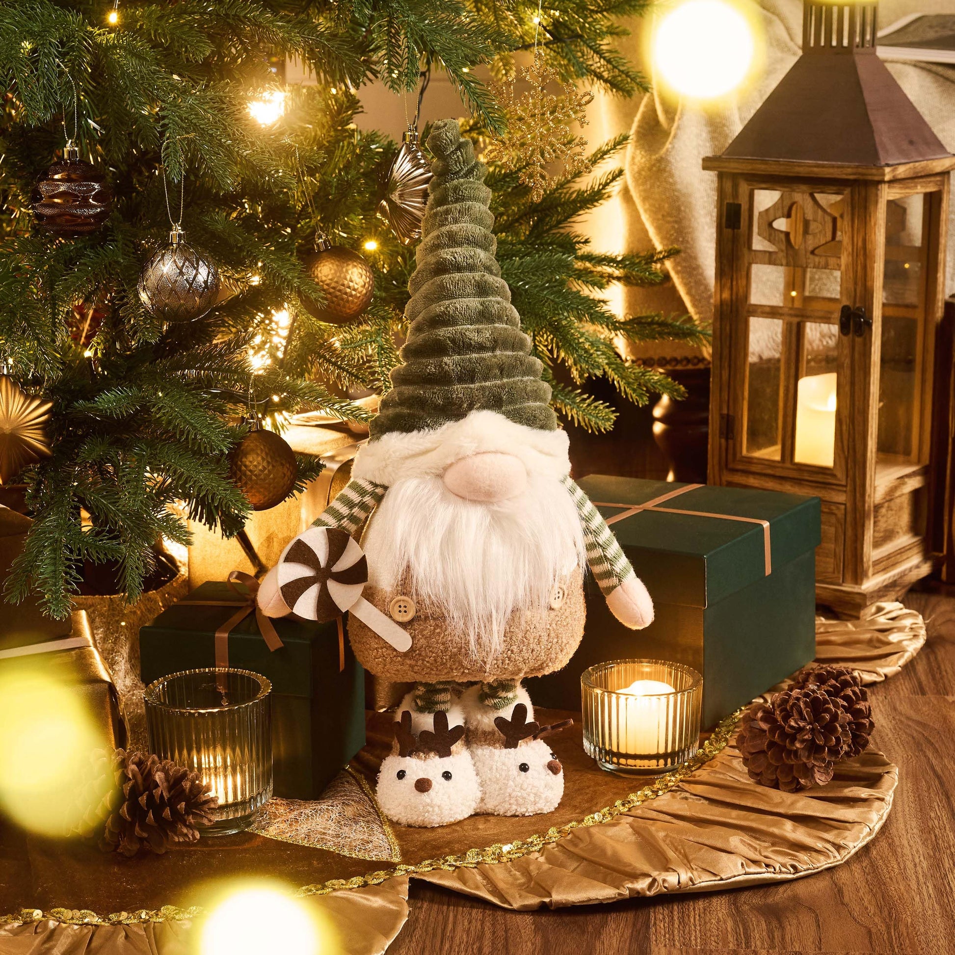 VALERY MADELYN Christmas Elf for Christmas Decoration, 64cm Christmas Gnome Green Brown, Adjustable Legs, Indoor House Christmas Dwarf, Christmas Ornament Decorations