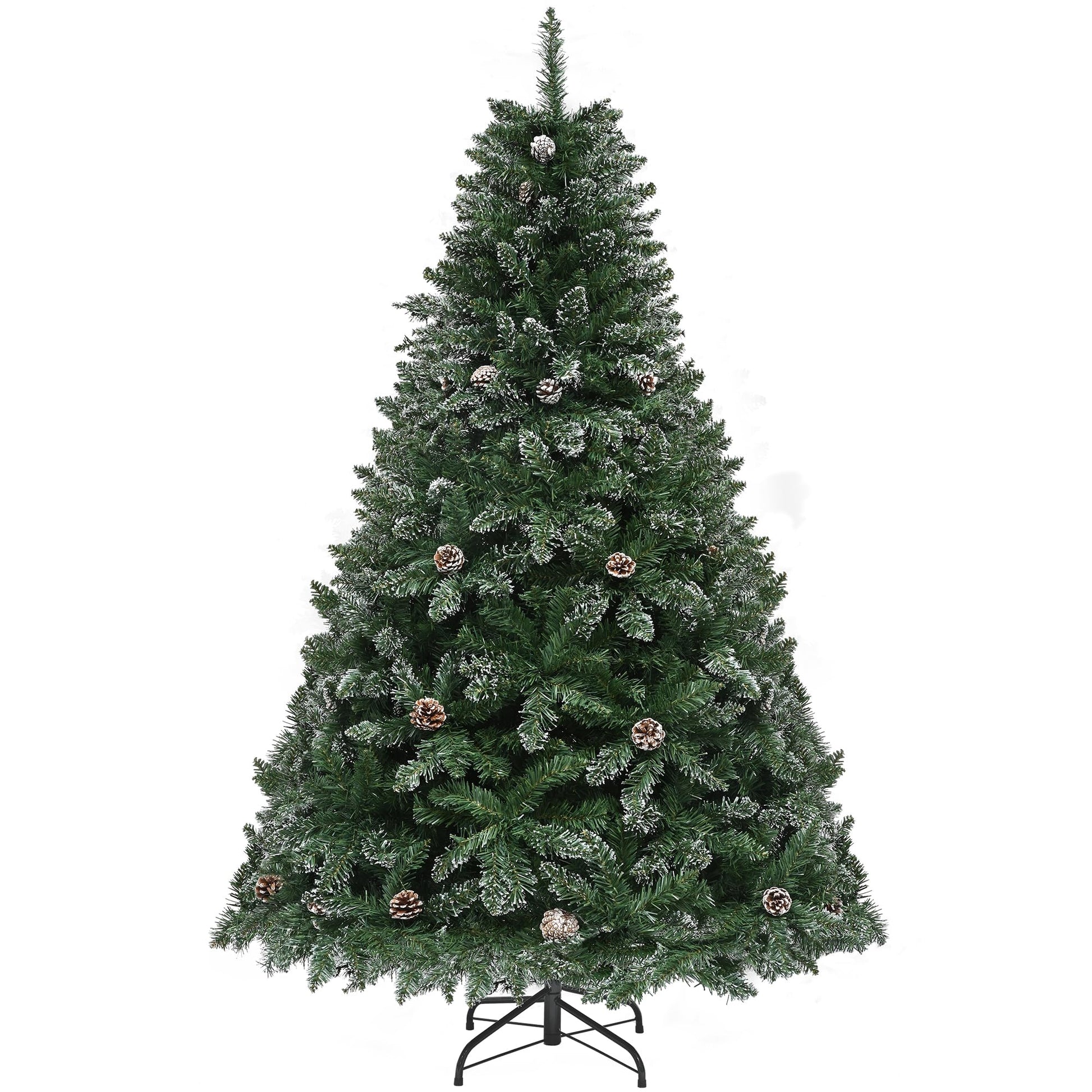 "Alive and Full: Our 6ft high, decorated artificial Christmas tree with hinges features 880 lush, flocked tips and is adorned with natural pine cones, creating a lively, enchanting Christmas atmosphere and spreading festive joy,Fire-resistant PVC Material: Our Christmas tree is made of carefully selected PVC material, providing fire resistance and reliable safety; The artificial leaves are tear-resistant and easy to care for, ensuring long-lasting durability; The tree comes with a reinforced metal stand, ensuring excellent stability and sturdiness,Easy Assembly and Fluffing: Thanks to the convenient hinge structure, the branches of our tree automatically expand, making assembly easier; Simply adjust the branches to fill gaps and enjoy a full appearance; After the holidays, it can be easily disassembled into 3 parts and compactly stored,Lasts for Many Seasons: Built with a sturdy X-shaped iron stand and a reinforced base, this tree offers improved stability and longevity; The strong branches can hold numerous ornaments while maintaining their firm structure, keeping your tree beautiful and safe for years to come,Ideal for Any Setting: Transform your home, office, shopping center, or Christmas party into a festive winter wonderland with our charming artificial Christmas tree; With its full shape, rich decorative elements, and personal touch, it brings Christmas joy to everyone around you"