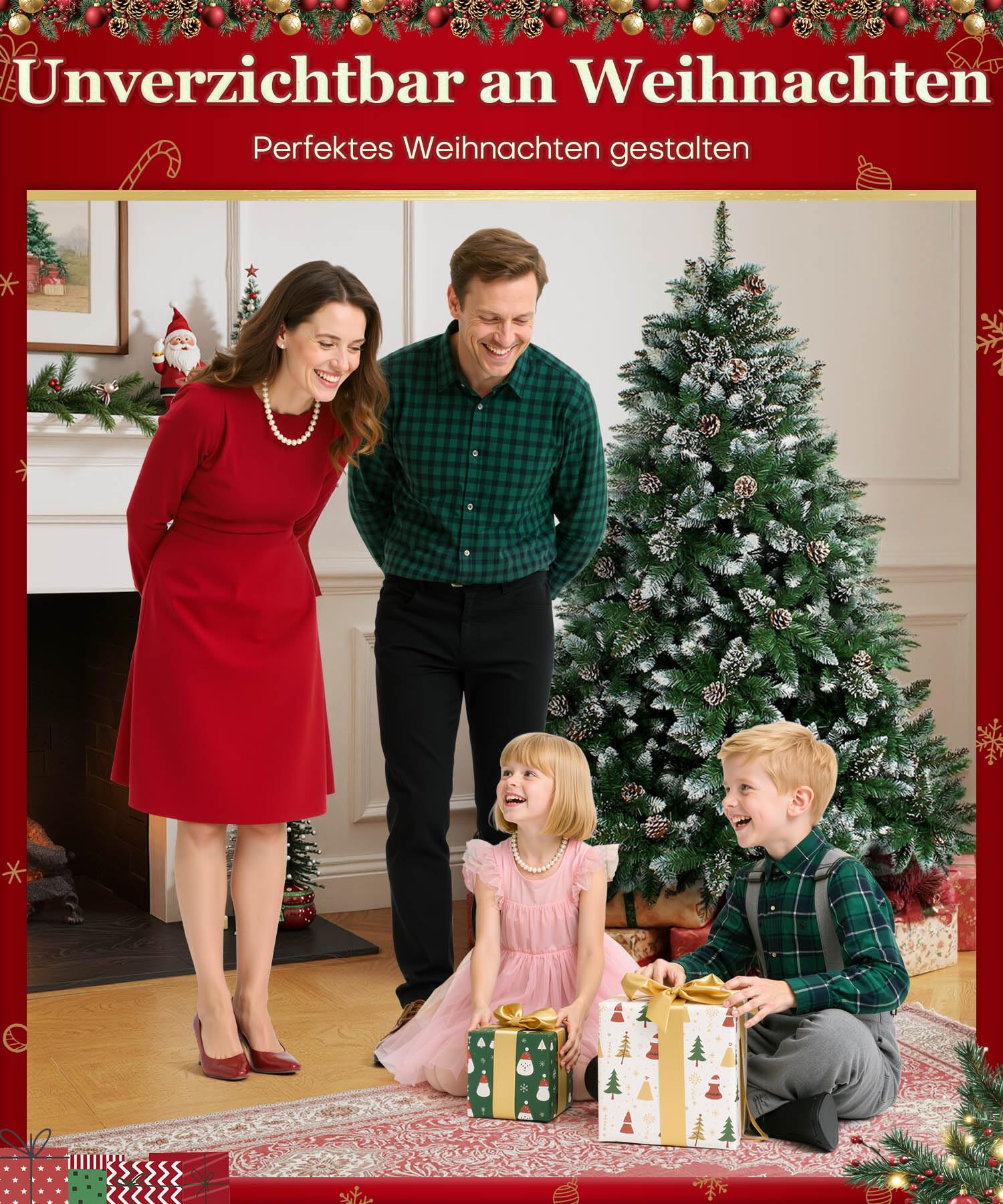 "180 cm with 930 tips, Real pine cones: The exclusive ultra simulation design: from the needles with white snow powder a whole branch is formed, the leaves are textured. Christmas tree with a height of 180 cm has the number of pine needles up to approx. 930 tips. The long and dense pine needles with real pine cones are decorative"
